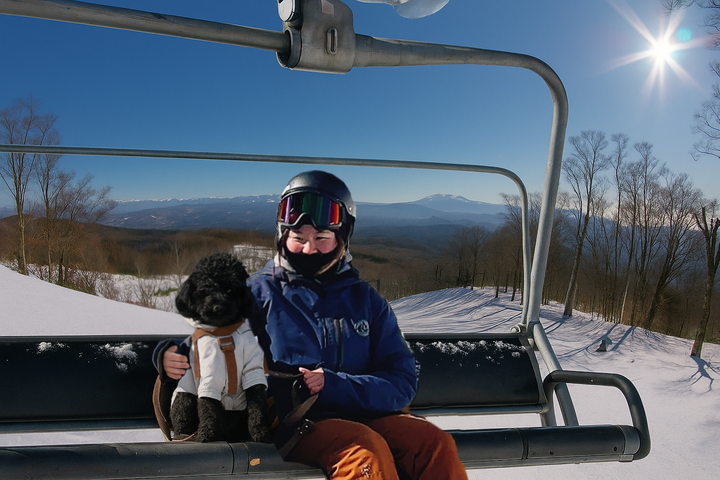 リフトはリュック、もしくはキャリーバッグなどに入れた状態であれば同乗OK!リードを着用した状態であればコース脇を通行することができます。飼い主さんが手ぶらでもスキー体験ができるレンタル用品も充実!初心者さんでも気軽にチャレンジしやすい環境が整っています。