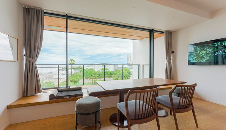 南熱海壱番館(旧 網代山壱番館)は相模湾を眼下に望む、高台の白亜のコンドミニアムです。キッチン・リビング・寝室があるお部屋で、おうちのように愛犬と過ごすことができます。