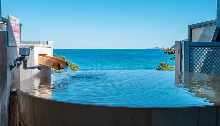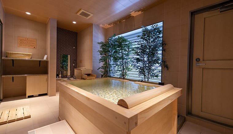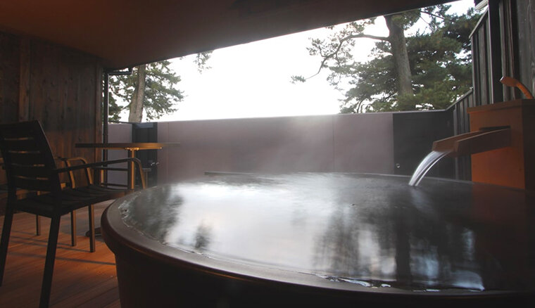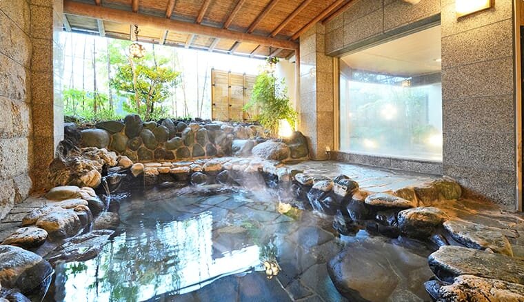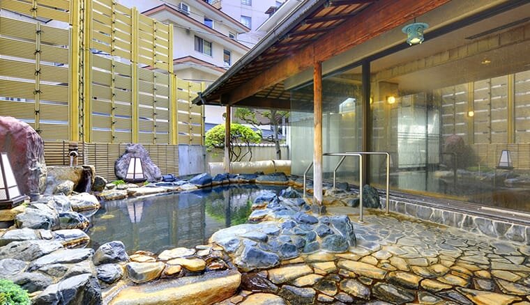 美肌にも効果的な温泉は、大浴場だけでなく貸し切り露天風呂でも楽しめます。プライベートな空間で温泉を楽しめる露天風呂付き客室の用意もあり、お風呂好きにはたまりませんね。
