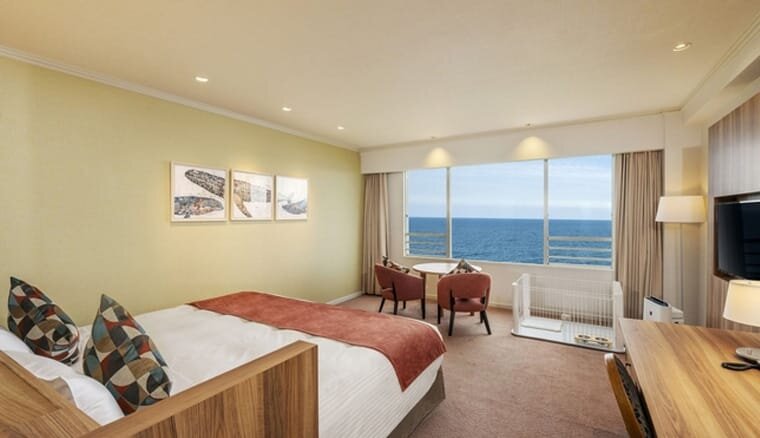 相模灘を一望する絶景の全室オーシャンビューのリゾートホテル「ホテルニューアカオ」。