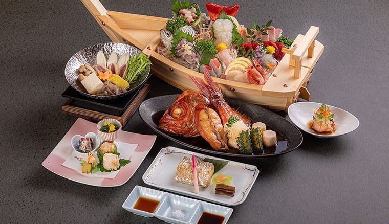 - 熱海の海の幸を贅沢に使った会席料理が堪能できます。