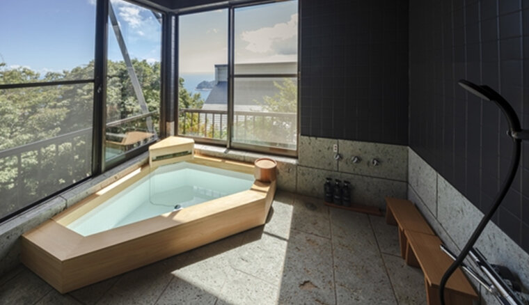 The Villas atami amazing ocean viewは、その名の通り、高台から熱海の海が一望できる見晴らしの良い一軒家タイプのヴィラです。なんと温泉が楽しめる浴室にも大きな窓が備え付けられていて、お風呂からも海が一望できます。
