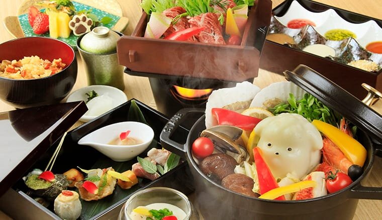 食事場所はレストラン・愛犬同伴OKの個室お食事処からお好きな方を選べますので、「食事中にお部屋に置いていくのは心配…」という方も安心です。伊勢海老や金目鯛など、海の幸をふんだんに使ったメニューを味わい尽くしましょう。