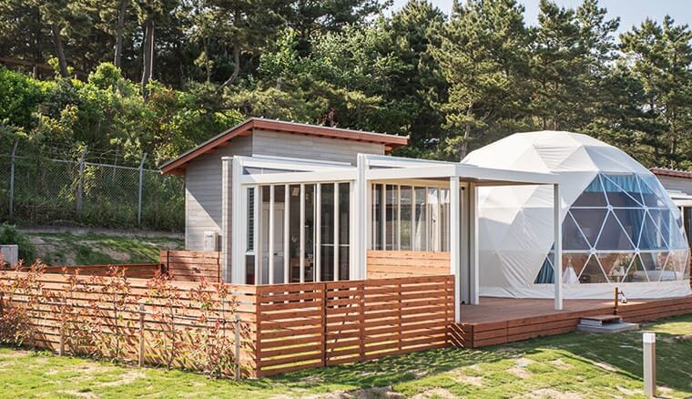 大洗のビーチが目の前の芝のプライベートドッグラン付きコテージかドームテントで愛犬とラグジュアリーグランピング を体験してみませんか?