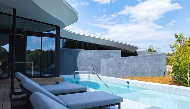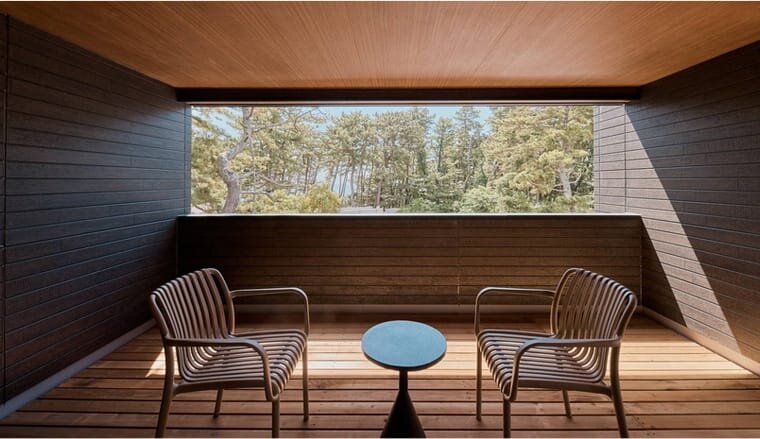 大洗パークホテルに2024年4月ニューオープンしたばかりのヴィラは、松林に囲まれた静かな空間にある聞こえるのは風や波のささやきだけという完全プライベート空間。