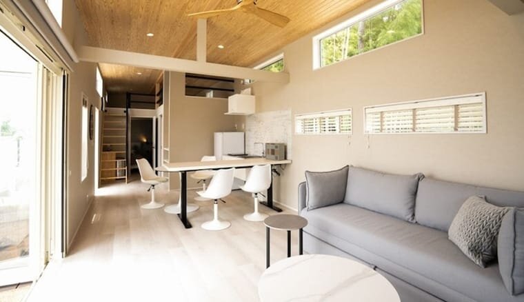 スタイリッシュなコテージで、しっかりとした造りとなっているので、遮音性に優れ、滞在の快適性が高くアウトドアが初めての方でも安心してお過ごし頂けます。ワンコが広々と走り回ることのできるドッグランスペースも個別に備えているので、愛犬も喜びます。