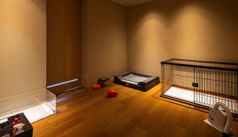 お部屋は滑りにくい床材、傷や汚れに強い壁を採用しており、飛び出し防止ゲートやリードフックなどワンコと滞在しやすい工夫が随所に施されています。充実したペットアメニティも魅力です。