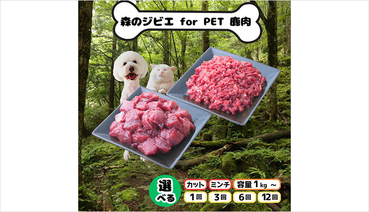岡山県西粟倉村では、10,000円〜166,000円の寄付金で森のジビエforPET鹿肉カット&ミンチを返礼品としています。カットとミンチのセット、カットのみ、ミンチのみの3種類から選べるので、愛犬の好みに合わせることができます。鹿肉は他の飼育されたお肉と比べてアレルギーの出にくい食材として知られており、オメガ6脂肪酸を含むお肉です。カロリーが低く、タンパク質が豊富なので、ダイエットに取り組みたいワンコにもぴったり。野生のお肉なので風味が強くし構成が高いので、食欲が落ちてきたというシニアワンコにもおすすめの食材です。ワンコだけでなく、猫も食べられる食材となっています。