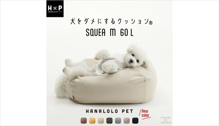 クッションの上にコロンとした瞬間から、ビーズが体圧分散し、とってもリラックスできるもっちりクッションです。ペットの体系に合わせて、ビーズを少し減らして埋もれる感いっぱいのクッションにしてあげることも。