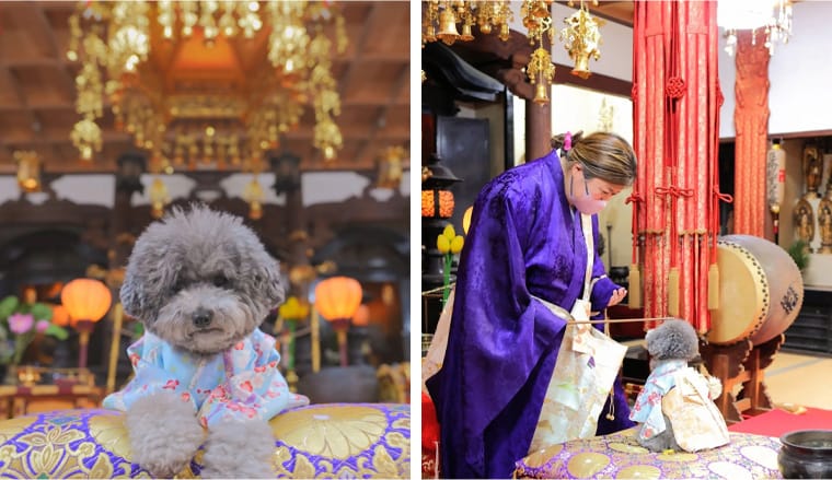 本堂の前で写真撮影を行うことができるので、着物を着たワンコが多く訪れています。マナーウェア着用必須なので忘れずに持参しましょう。