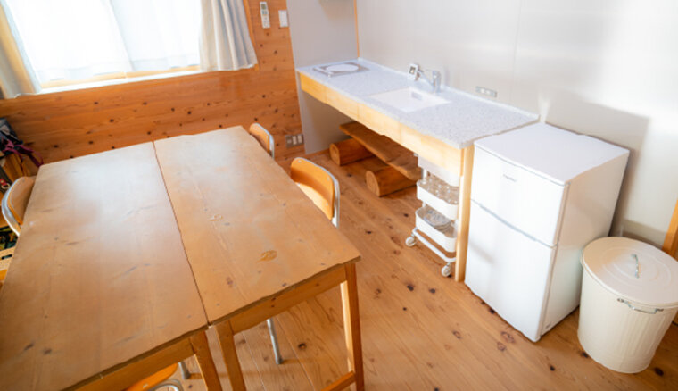 木の内装がとても落ち着く清潔な室内は、10kg以下の犬であれば1匹まで同伴可能です。