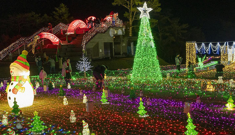 道の駅で開催されている毎年人気のイルミネーションです。毎年設定されるテーマはシークレットになっており、点灯式で発表されます。点灯した瞬間に広がるイルミネーションを想像しながら楽しめるのがお楽しみポイントで、点灯式の日には花火の打ち上げも行われます。