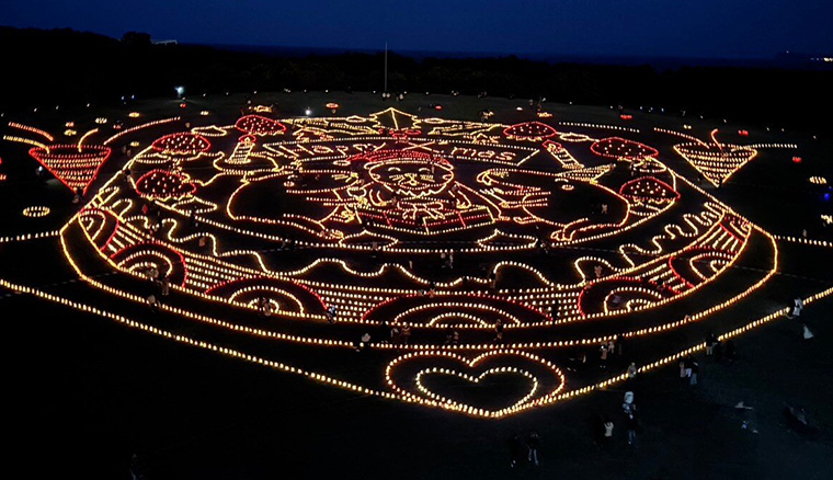 海の中海浜公園で毎年開催されているうみなかキャンドルナイトは、毎年デザインを公募し、決められています。10,000本ものキャンドルを使用したアートは圧巻です。
