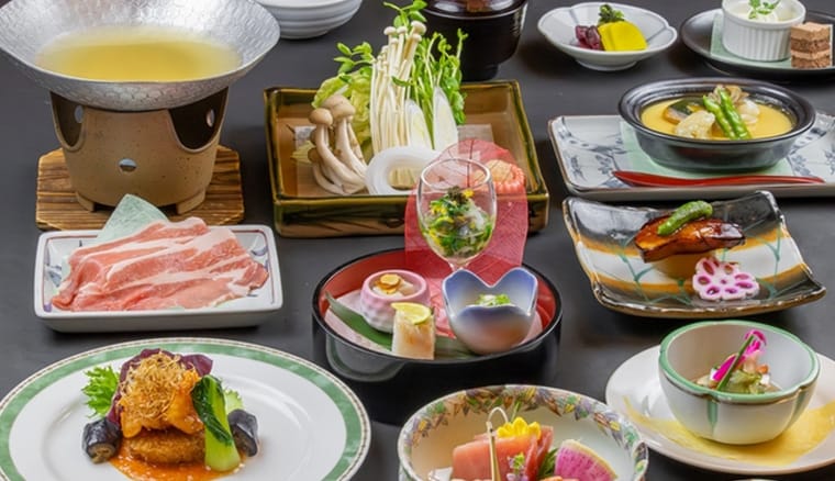上州連山を見渡せる展望露天風呂、畳風呂や上州もち豚や上州牛が味わえる季節ごと旬の味覚を存分に取り入れた、彩り豊かな上州和食膳が人気です。お食事は3名様まではお部屋食で対応いただけます。※4名様以上は会食場でのご用意となります。(お子様を含む)