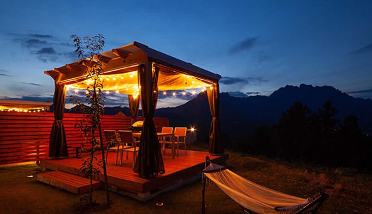 群馬県渋川にあるBlissful Gardenは、天然温泉「ばんどうのゆ」を美しい眺望を眺めながら楽しめる人気のグランピング施設です。