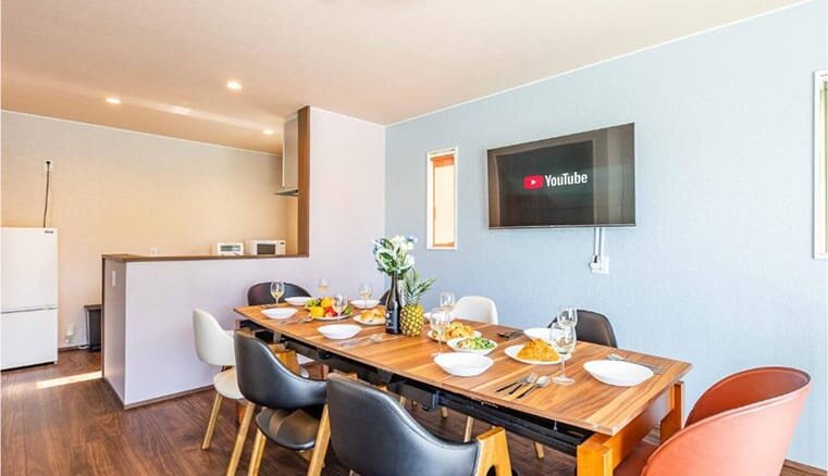 - 100平米超えの広さでのお部屋で、のびのびくつろげます!大人数での利用も可能です。