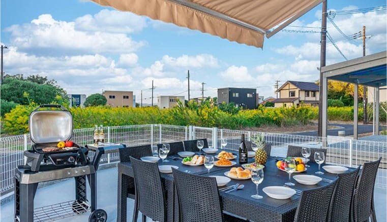 食事は和歌山県産のブランド牛を使ったBBQ、冬にはすき焼きかクエ鍋から鍋料理も選べます。朝食はベトナム料理のバインミーです。キッチン設備もあるので、ドライブ中に地物のおいしい食材をゲットしてきて、自炊なんかもいかがでしょうか?