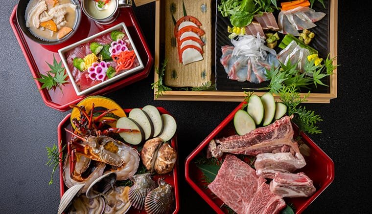 食事は、数種類のレストラン・バーから自由に選べます。地元・伊勢志摩の食材を使用し、四季折々に合わせた料理をぜひお楽しみください。