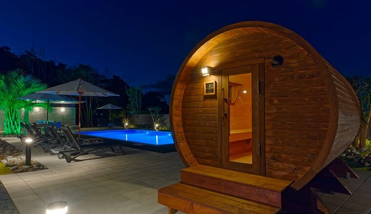 - お庭にはドッグランとバレルサウナが楽しめる。