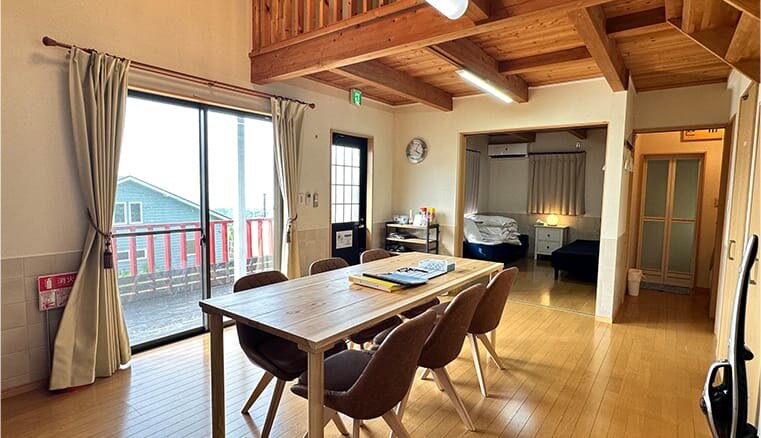 宿は約98㎡のメゾネットタイプで、広々した室内やテラスでのびのびでき、大型犬もOK、多頭飼いでも宿泊可能なのドッグフレンドリーな宿です。