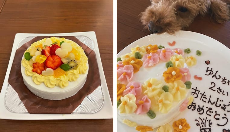 誕生日ケーキは3営業日前までにオーダーを!愛犬のお名前と年齢を入れてもらえます!