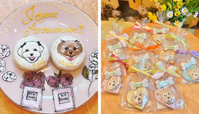 ワンコ用食事メニューもあるのはもちろん、愛犬の誕生日にオーダーしたい愛犬を立的に再現した似顔絵ケーキも大人気です!