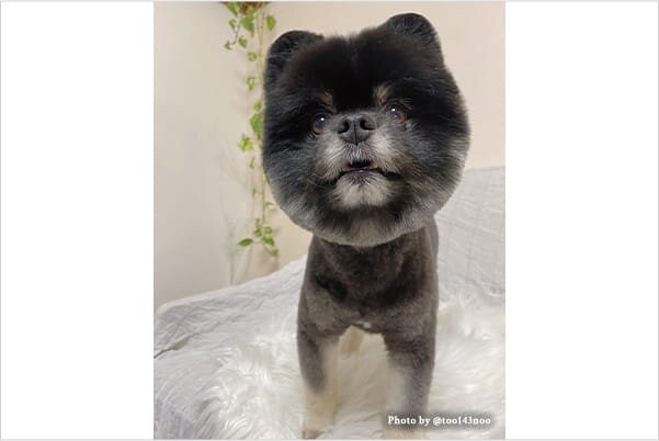 お顔と体の境目がわからないよう、まるでアザラシのようにカットするスタイルです。もふもふポメラニアンとはまた違った愛らしさに目を惹きます。
