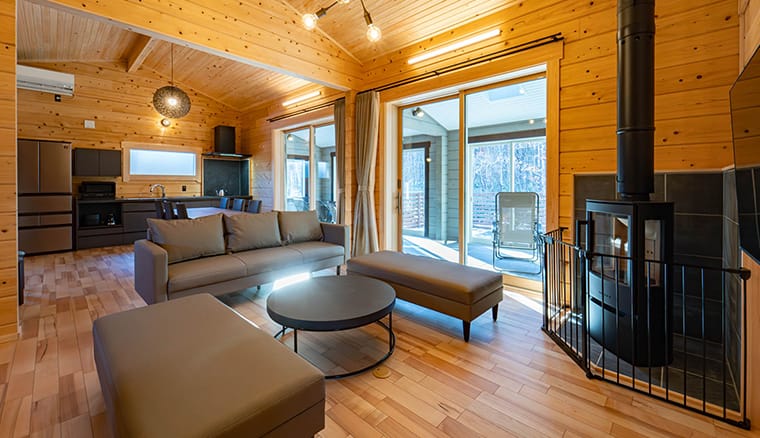 北欧風コテージ・8棟は全て愛犬と滞在できます。ワンコの滞在費は無料!広さは4人・6人・8人棟の3タイプがあり、いずれもキッチンやバス・トイレを完備。広大なドッグランも自由に利用できます。