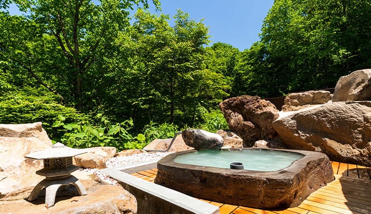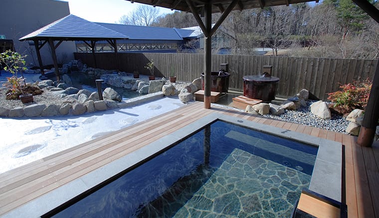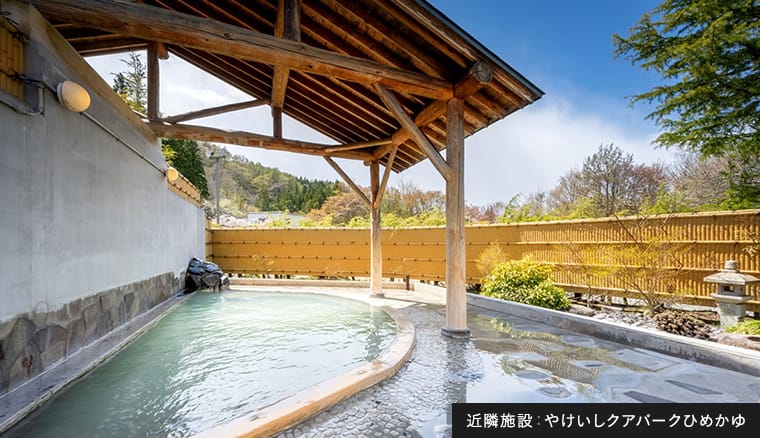 蔵王温泉街にあり、宿では100%源泉かけ流しの蔵王温泉を7種の貸し切り浴場や2種の大浴場、2種の庭園風呂から楽しめます。大型犬がゆったり入れるワンコ用の貸し切り風呂も完備!