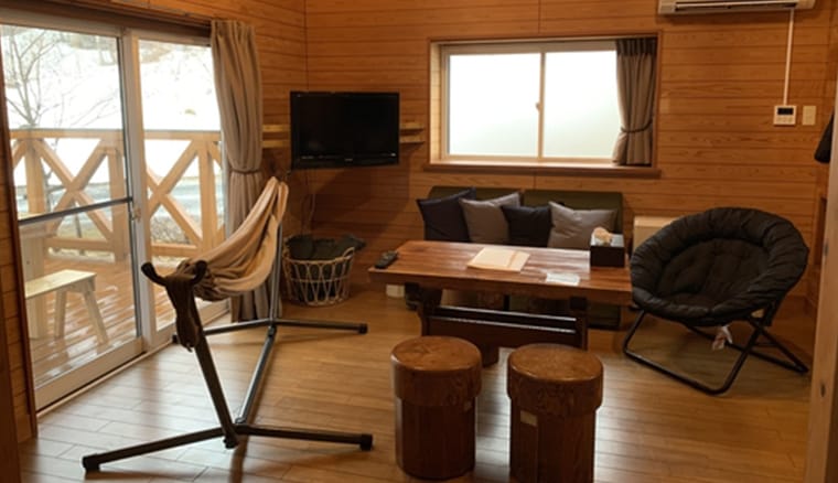 コテージでは焚き火体験や花火ができ、気軽にアウトドアを楽しめます。また、隣接する温泉施設の大浴場・サウナを無料で利用できるのも嬉しいポイントです。