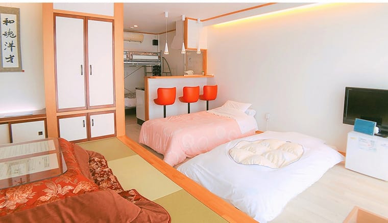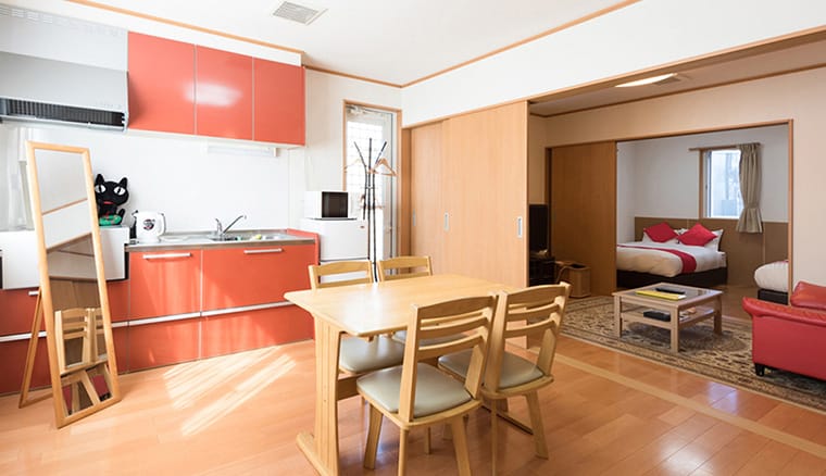 和洋風個室アパートメントなど一部客室のみですが、ワンコとの宿泊もできます。同伴ワンコの大きさや頭数の制限はありません。全室にキッチンやトイレ、バスルーム、洗濯機が完備され、長期滞在にもうってつけです。