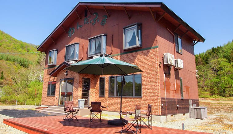 福島県北塩原村にある「ペンションわんだふる」はワンコと泊まれるペンションです。裏磐梯、桧原湖の北部湖畔にある宿で、道の駅裏磐梯より車で15分ほど。