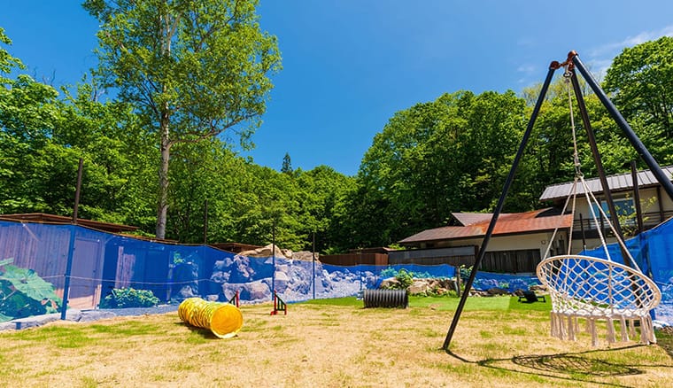 8000坪もの敷地には自然を活かした散策路が整備され、ワンコとのお散歩コースにオススメ!人工芝の共用ドッグランも完備されています。無料ドッグバスもあり、たくさん遊んで汚れた後でも安心ですね。