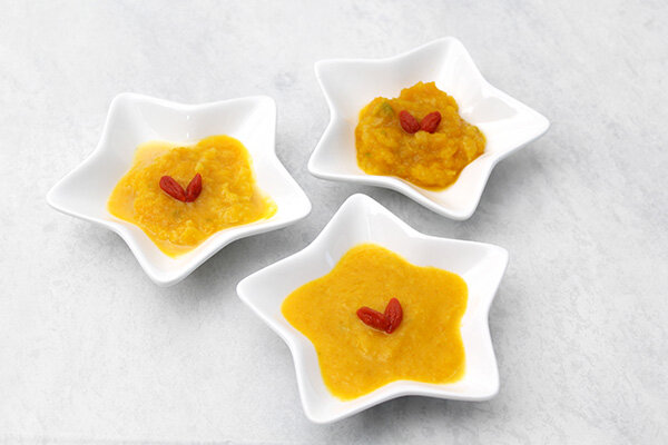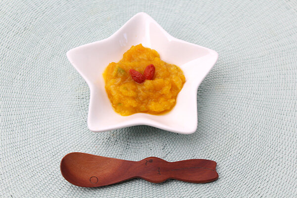歳を重ねると、嚙む力が弱ってそれまで好きだったおやつが食べられなくなったり、お水をがぶがぶ飲むとむせてしまったり、飼い主が切なく感じることも増えてきます。ハイシニアになっても、『今』のその子に合わせて美味しく、そして安心して食べられるものを簡単に作れたらと思い、今回のレシピを考えました。パピーからハイシニアまで、みんなで美味しく食べられるのも嬉しいですね。かぼちゃをさつまいもにかえたり、梨をりんごにかえたり、どうぞアレンジも楽しんでいただけると嬉しいです。見た目はかぼちゃが強いですが、食べてみると意外にも、梨の味もしっかり感じられて美味しいです。飼い主さんも召し上がる場合、甘さが足りなければ蜂蜜を少し入れてお試しください。