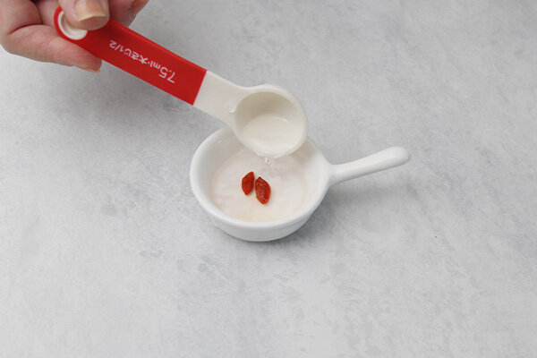クコの実がある場合は大さじ1/2ほどの水に浸しておきます。