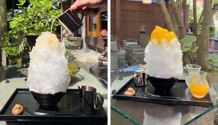 わらび餅や、おしるこ、あんみつなどの甘味も充実していますよ。暑い夏には、平成の名水「毘沙門氷」で作ったかき氷がおすすめです。