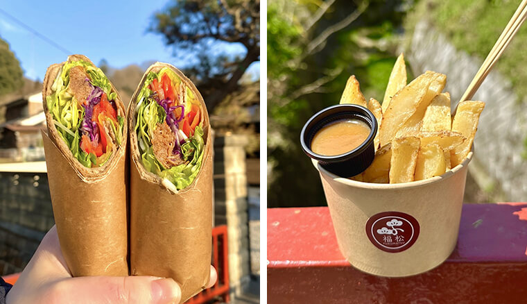 食事をした人は敷地内にあるお隣の売店で、おからを無料でもらえるんです。売店では、おからドーナツや、おからクッキー、おからサラダも買うことができます。