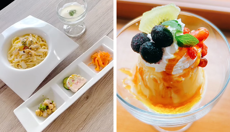 インパクト満点!旬のフルーツをふんだんに使ったパフェにもちもち太麺パスタでお腹も心も満たされる
