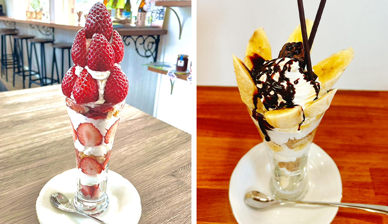 そして、Cafe fu.ru.ru の人気メニューにパフェがあります。季節ごと旬の果物を使ったパフェが絶品です。