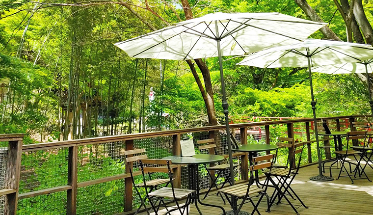 ワンコ同伴OKなテラスからは、長瀞の自然を満喫できる緑がいっぱいの癒し空間です。