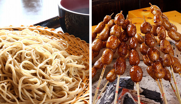 観音そばに、コシの強い観音うどん。山の幸をふんだんに使った「こじゅうはん」という郷土料理や、お祭りやお祝い事で振る舞われる「おひまち料理」。どれも素朴な味がするメニューです。