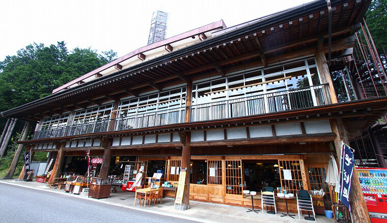 お店は、大丸太造りで山小屋を思わせる建物。三峯神社から徒歩5分と言うこともあって、お参りの方が大勢立ち寄ります。