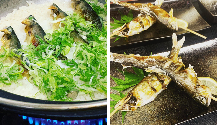 春先に獲れる稚鮎の煮干しだしを使って、鮎を丸ごと炊き込むんです。ワタの苦みと鮎の香りがたまらないですよ。