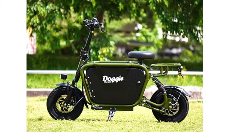 「Doggie」は、「愛犬と一緒に旅をしたい」という飼い主の声から生まれた、原付一種(600W)クラスの電動バイクです。最大の特徴は、小型~中型犬が快適に搭乗できる専用設計。これまでのバイクでは難しかった“ペットとの同乗”を安全かつスタイリッシュに実現しています。