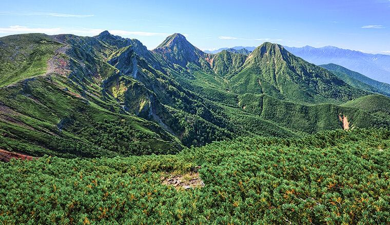 長野県の中西部にある赤石山脈北端の標高1,955mの山です。愛犬とリードを付けたままゴンドラに乗車可能で、約10分間の空中散歩を楽しめます。ゴンドラ山頂駅から山頂までは、約60分トレッキング。愛犬と一緒に登れるルートは緩やかで歩きやすく、登山初心者の飼い主さんにも安心です。
