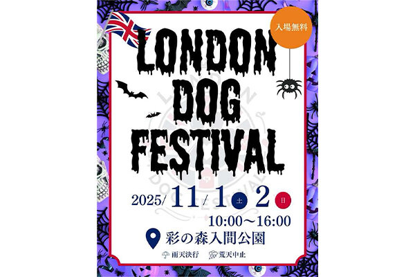 埼玉県入間市 彩の森入間公園にて「London Dog Festival~しっぽふるふる!ハロウィンさんぽ~」が開催されます。紅葉が色づく公園でわんこと一緒に秋のお散歩を楽しめるドッグイベントです。ハロウィン気分を味わえるフォトブースや、愛犬と一緒に過ごせる楽しいコンテンツ盛りだくさんで楽しめます。
