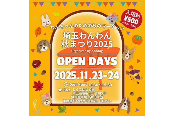 暑い夏の季節はお休みしていた、埼玉わんわんイベントが秋に再稼働!1日70~100店舗が出店し、たっぷりお買い物を楽しめます。