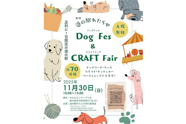 足利には「道の駅」がない!『もし足利市に道の駅があったらこんな感じ?』をテーマにわたらせリバープラザが1日限定で道の駅に変身します。ドッグフェス、クラフトフェア、キッチンカー・飲食テント、ワークショップが同時開催で家族みんなで楽しめます。