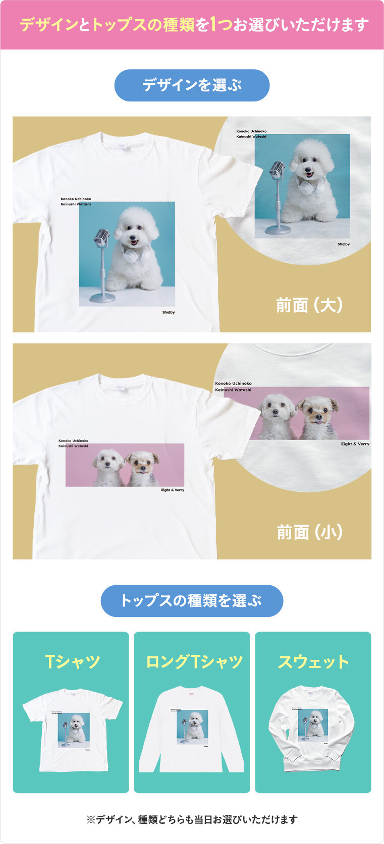 - トップスは、Tシャツ・ロンT・スウェットから好きなものをお選びいただけます。
