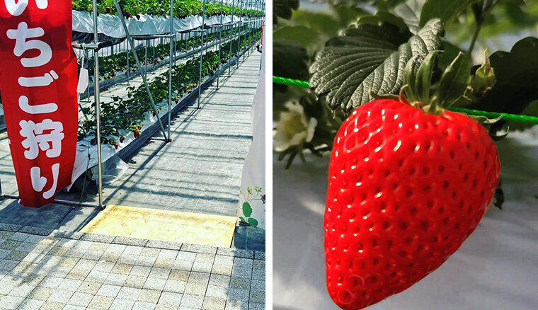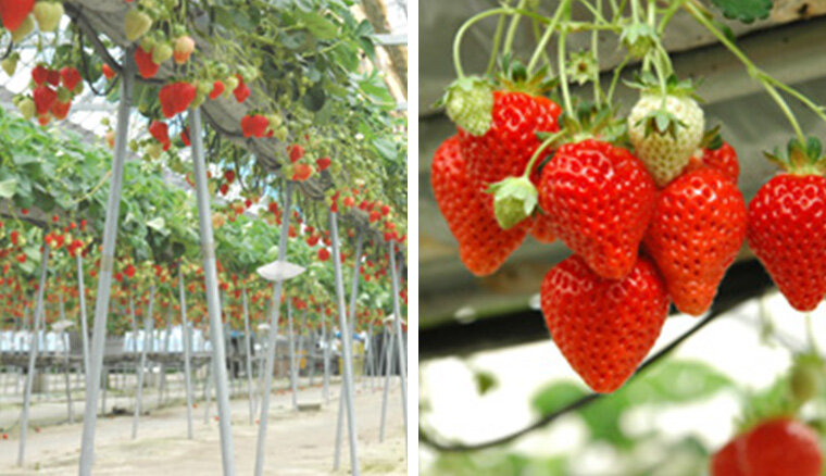 クラシック音楽を聞かせて独自の漢方処方で育てた「章姫(あきひめ)」などの安全で美味しい苺が味わえます。すべて高設栽培となっているので、雨でも大丈夫ですし、足元も汚れません。